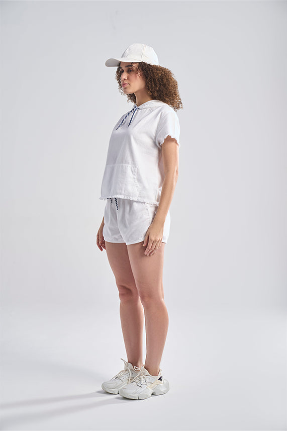• Hot shorts with rounded hem detail