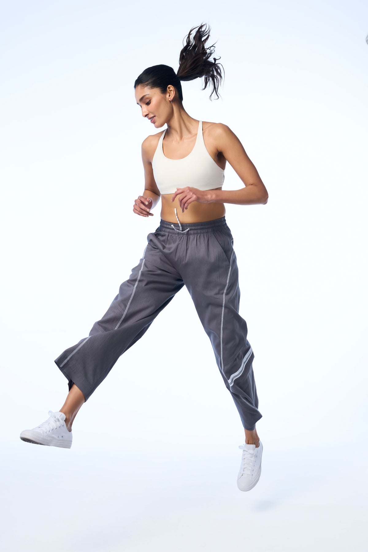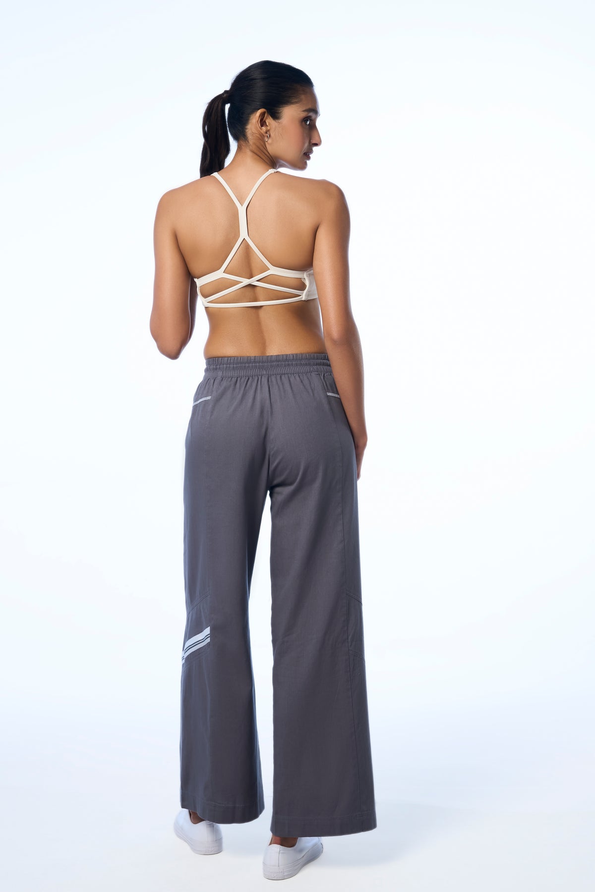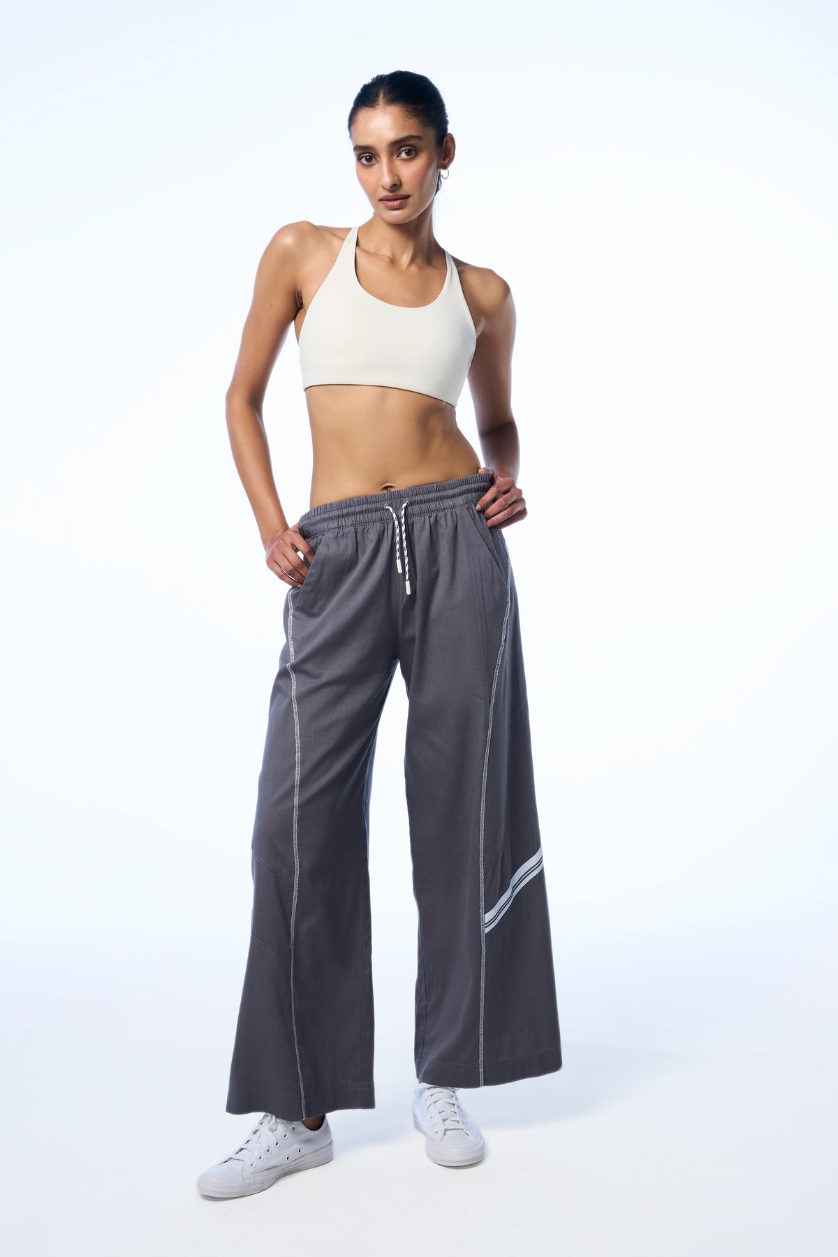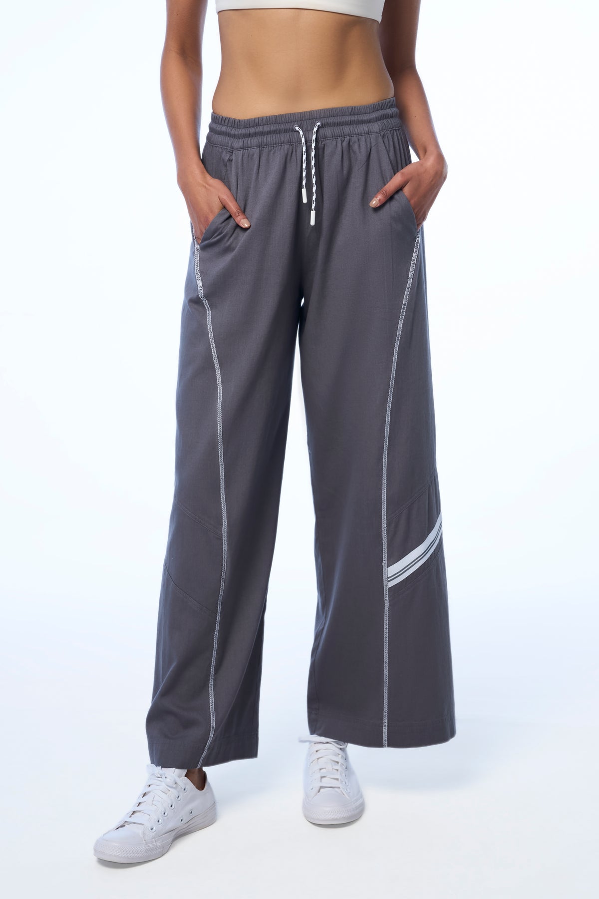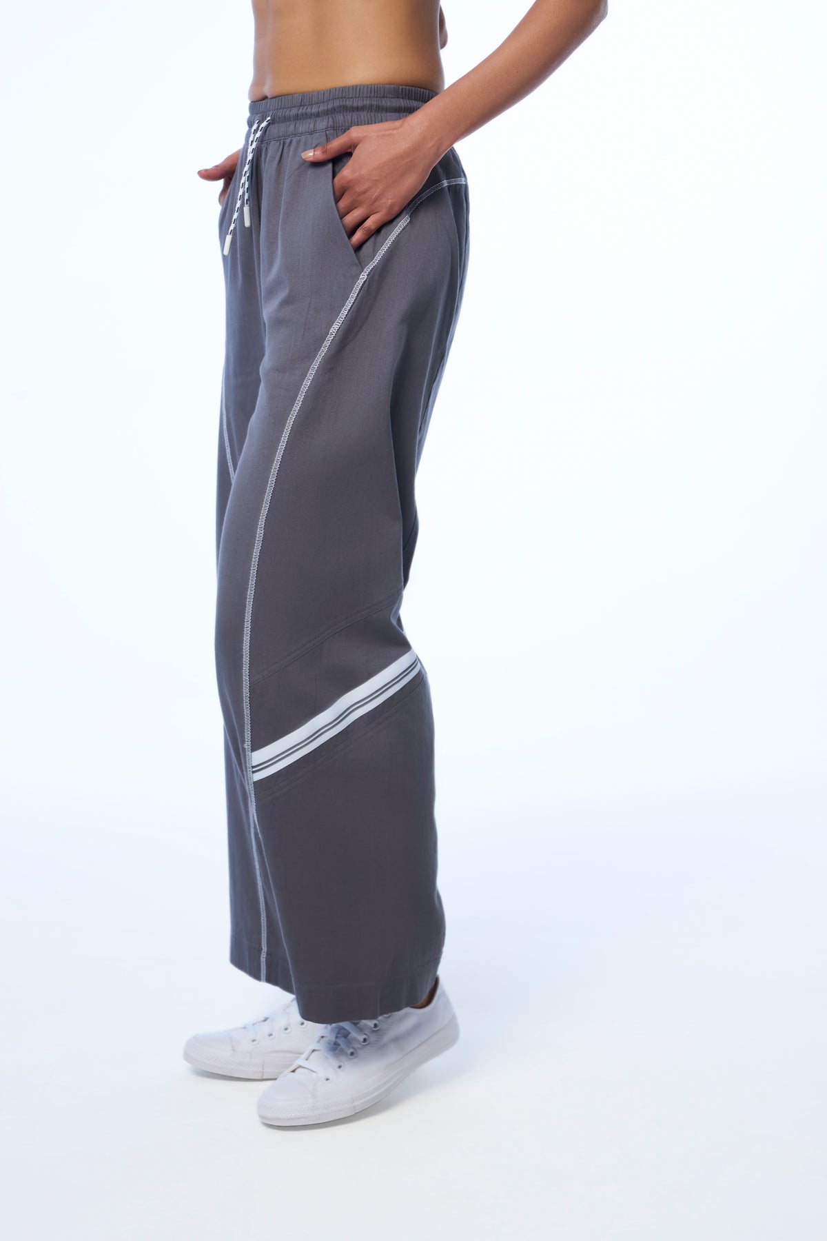 Sporty stripe tape detail on side panel - Minimal sport-inspired tape at the seam for quiet contrast.